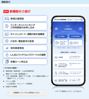 ※しんきん共同システムを利用している全国の信用金庫に対して、インターネットバンキングの契約がなくてもリアルタイムで残高照会や入出金明細が確認できる信金業界のバンキング機能付きスマホアプリです。詳細はNTTデータ様のニュースリリース等をご参照ください。